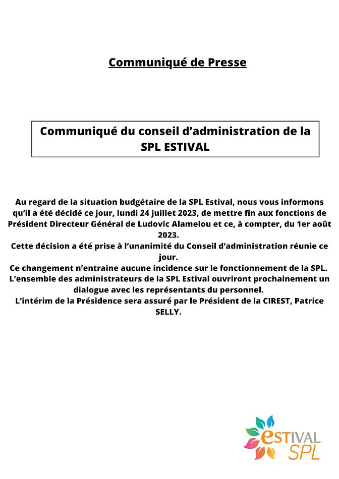 SPL Estival : le conseil d’administration « débarque » son Pdg Ludovic Alamélou