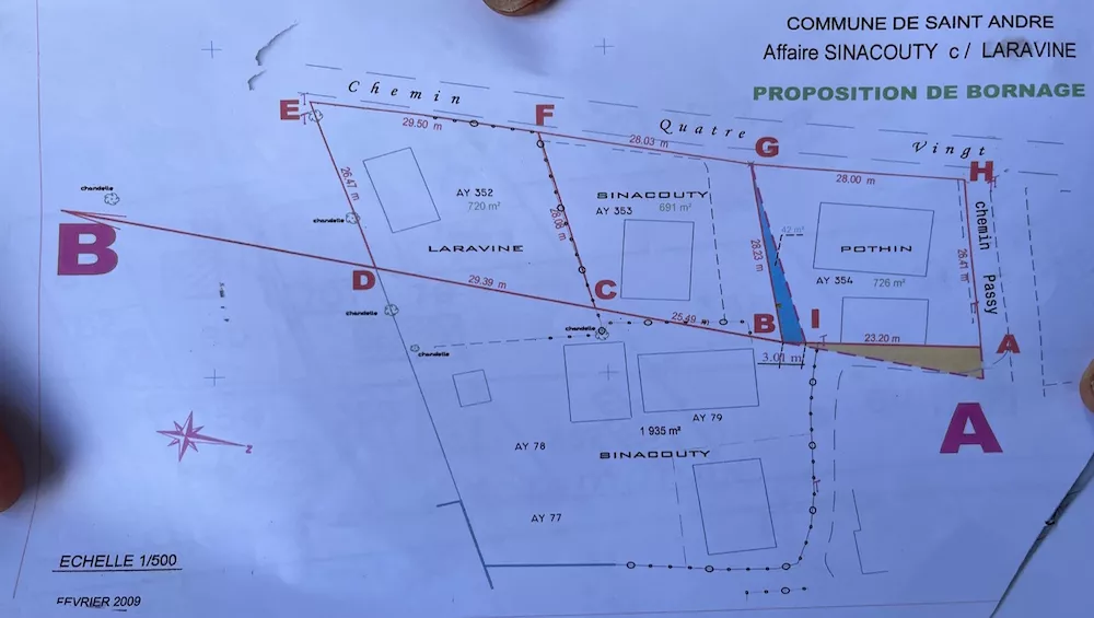10. Honte à ceux qui ne savent pas lire. Les 2 partis sont des personnes âgées. Il faut être stupide pour ne pas comprendre qu’après les passages de 3 géomètres expert et 3 jugements que les sinacouty ont un problème. D’autant plus qu’ au vue des photos Mr Sinacouty a largement la place pour passer sa voiture surtout qu’Il a pu faire passer un tractopelle