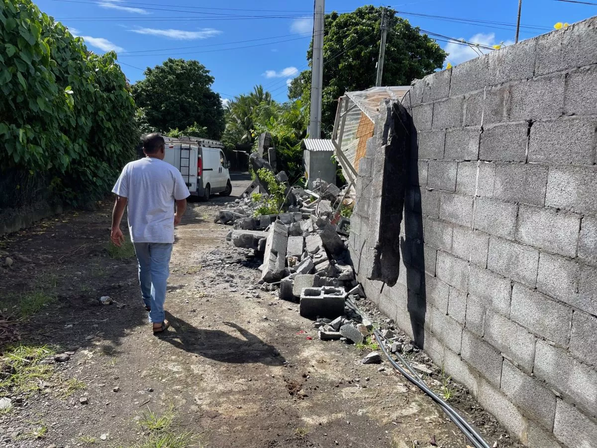 Aussi, samedi dernier (30 avril 2022), un peu avant 6 heures du matin, estimant que « la justice est injuste » et « qu’elle n’a pas correctement fait son travail », Antonin Sinacouty, qui en a ras-le-bol de cette situation, a, comme il a prévenu par écrit dans sa lettre ci-dessus, employé « de gros moyens » pour « réparer cette injustice ». Il a loué un tractopelle avec chauffeur et a fait démolir une grande partie du mur de la famille Pothin, le fameux mur de la discorde entre ces deux familles de la Rivière-du-Mât-les-Bas qui s’entendaient pourtant bien il y a quelques années de cela.