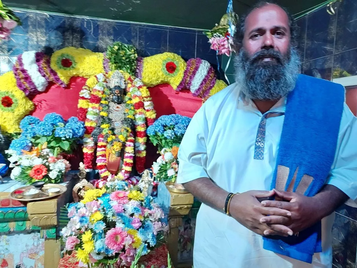 Emmanuel Rangayanaguy, propriétaire du temple et prêtre tamoul. (Photo prise ce dimanche 16 octobre) dans le sanctuaire dédié à Vishnu.