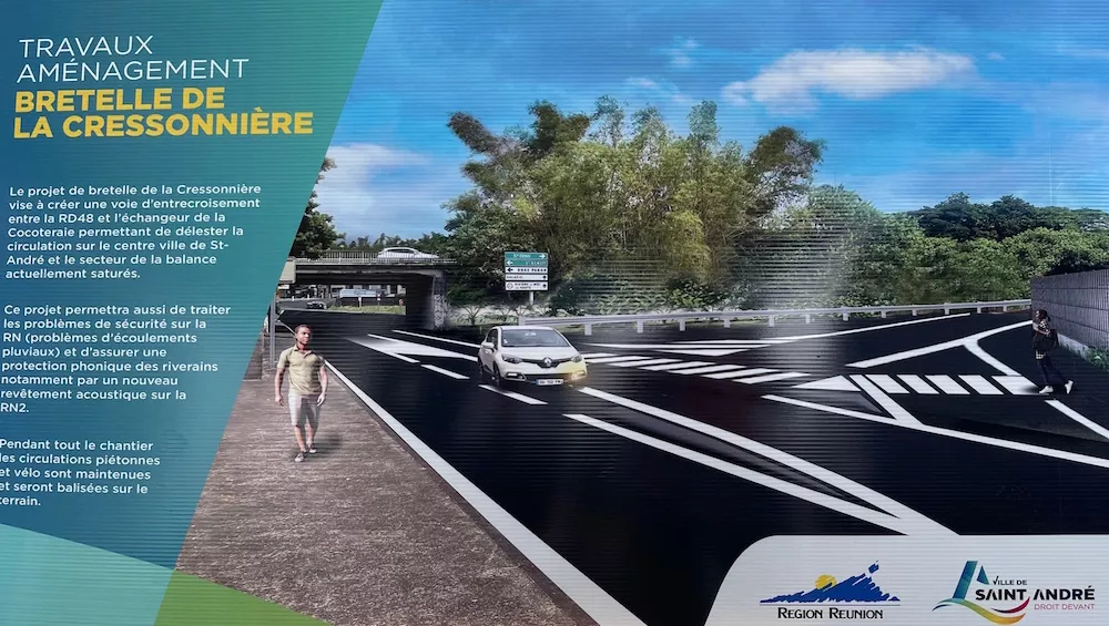 En effet, il y a des projets de La G’ART dans le domaine culturel (rue de la Gare). Montant du projet : 3,5 M€. Financement attendu de la Région : 2,7 M€ ; Dans le domaine de la mobilité, notons les travaux de modernisation de l’Avenue des Mascareignes : 6 M€. Financement Région : 2,5 M€ ; L’échangeur du chemin Lagourgue ; La déviation de la Cressonnière afin de désengorger la circulation jusqu’au rond-point de la Balance. Montant des travaux déjà commencés : 2,7 M€. Fin du chantier : mi novembre ; Le pont de Bois-Rouge pour 3 M€. Financement Région : 2,2 M€.