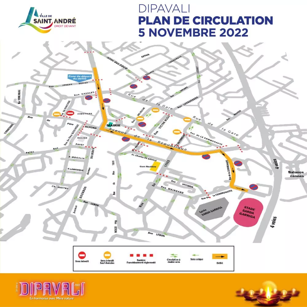 Pour les préparatifs de la mise en place de l’Arche du DIPAVALI 2022, le stationnement sera interdit du Jeudi 03 Novembre au Samedi 05 Novembre 2022, sur le parking de la place du 02 Décembre.