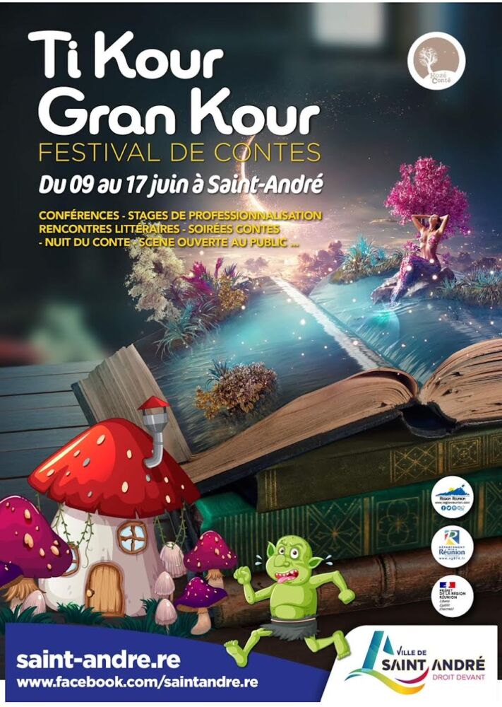 « Ti kour Grand kour », 3ème édition du nom. C’est le festival de contes qui démarre ce vendredi 9 juin à Saint-André. Il s’achèvera le 17 juin. Le coup d’envoi sera donné à l’Espace Roseli à la Cressonnière mais les « cosé » se dérouleront un peu partout dans la ville au fil des jours. Des spectacles pour tous les publics, jeunes et moins jeunes.