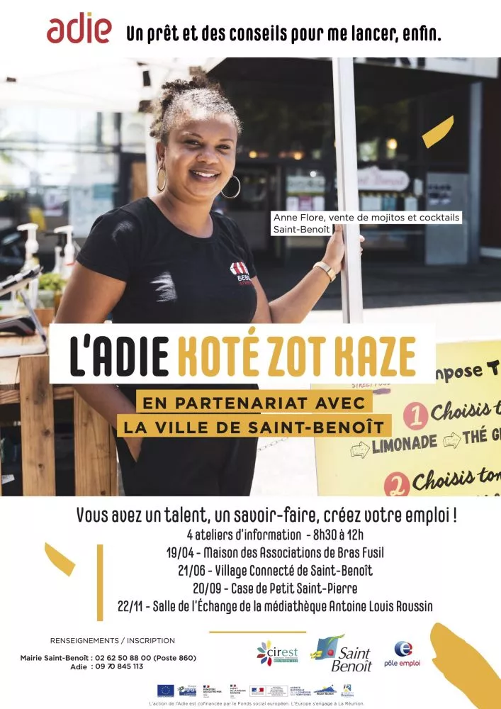 L’Adie La Réunion en collaboration avec la ville de Saint-Benoît et le Pôle emploi Réunion revient dans le cadre de l’opération intitulée : « L’Adie koté zot kaze » en soutien aux talents bénédictins !