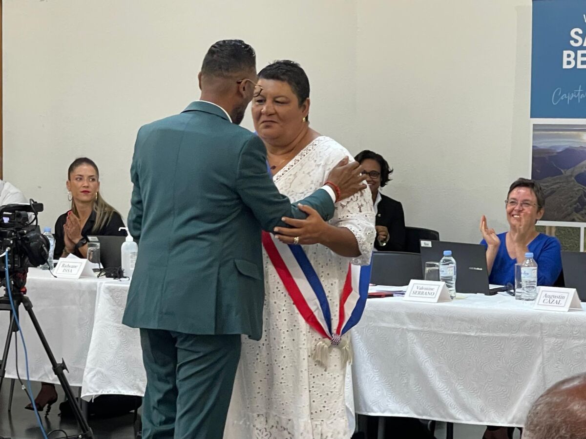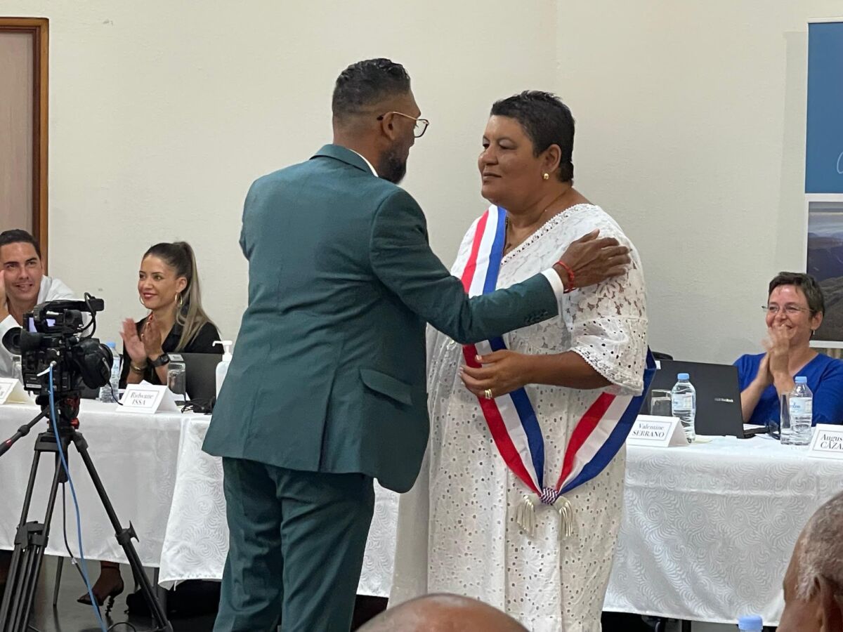 Après le vote, à la majorité, de la modification du tableau du conseil municipal, le maire Patrice Selly a salué l’arrivée de Christelle Hoareau parmi les adjoints en lui remettant l’écharpe tricolore. Voir photos ci-dessous :
