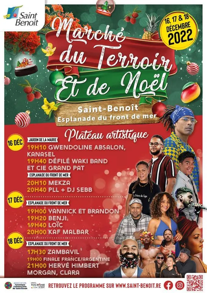 Le marché du Terroir et de Noël s’installera sur l’esplanade du front de mer du 17 au 18 décembre. De 10h à 21h, plus de 20 exposants, créateurs et producteurs locaux vous présenteront leur savoir-faire et leurs produits : confitures, gelés, miel, mangue, letchi, artisanat malgache, produits transformés, accessoires, sacs, bijoux, etc. C’est le moment idéal pour préparer les fêtes avec des spécialités locales et trouver un petit cadeau de dernière minute! Il y en aura pour tous les goûts.