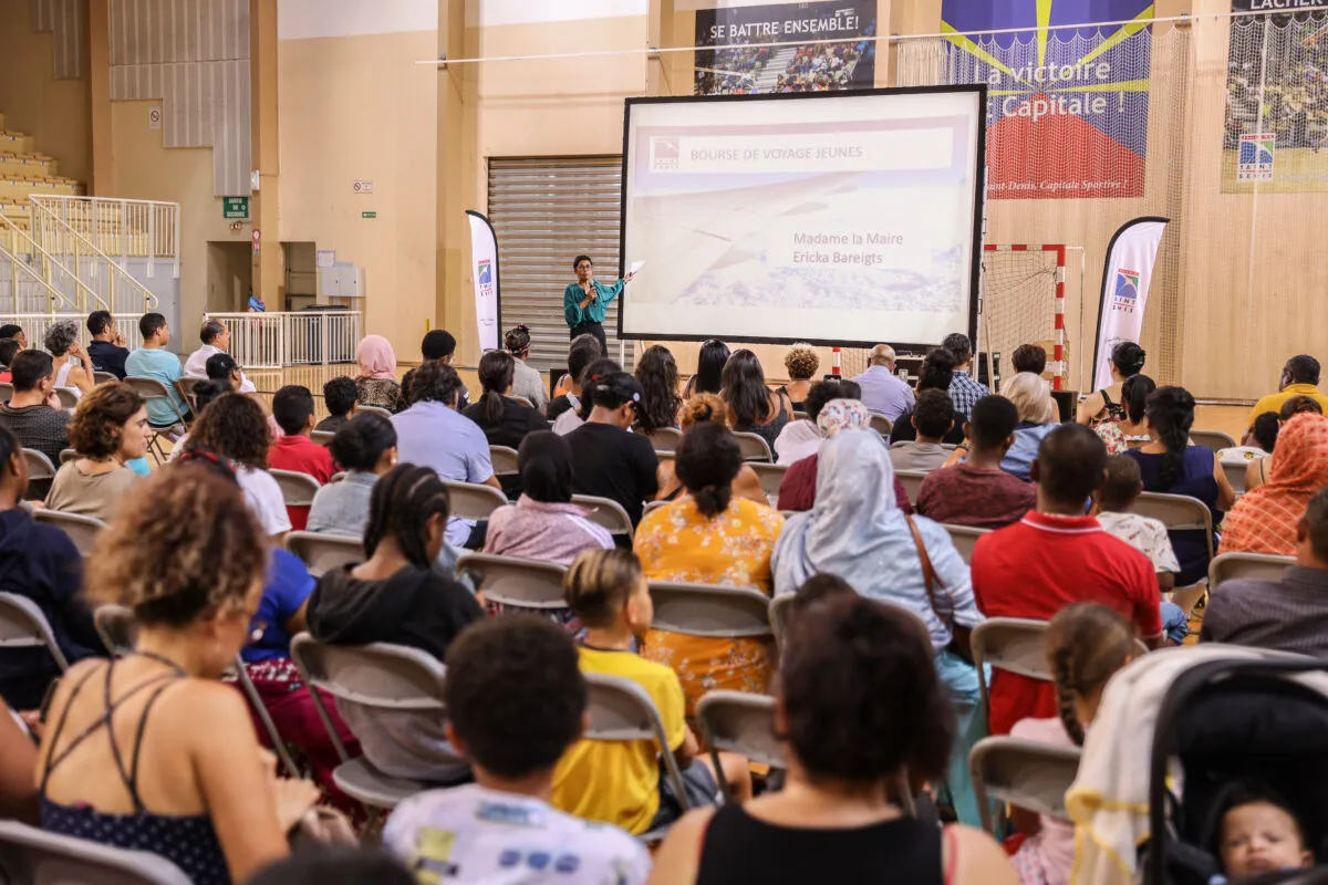 « À Saint-Denis, il y a 65 000 jeunes de moins de 30 ans, et eux aussi ont des projets. C’est pourquoi, la mandature a choisi de les accompagner dans leur chemin de vie. Plus tôt on est à l’aise avec le monde extérieur, plus tôt nous nous construisons, c’est aussi là, le sens de la Bourse de Voyage. C’est donc, cette année encore, une grande vague de départ, avec 231 jeunes lauréats issus de tous les quartiers de Saint-Denis. »