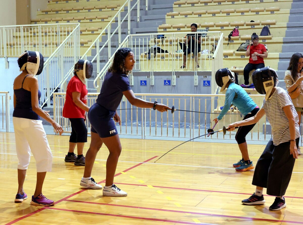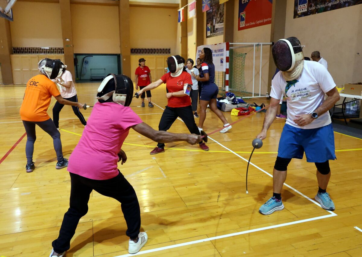 Samedi 24 juin, le gymnase de Champ Fleuri a vibré au rythme des mouvements élégants des fleurets et des épées. Saint-Denis a eu le privilège d’accueillir trois membres de l’équipe de France d’escrime pour une matinée axée sur le sport et la santé, spécialement organisée pour les seniors.