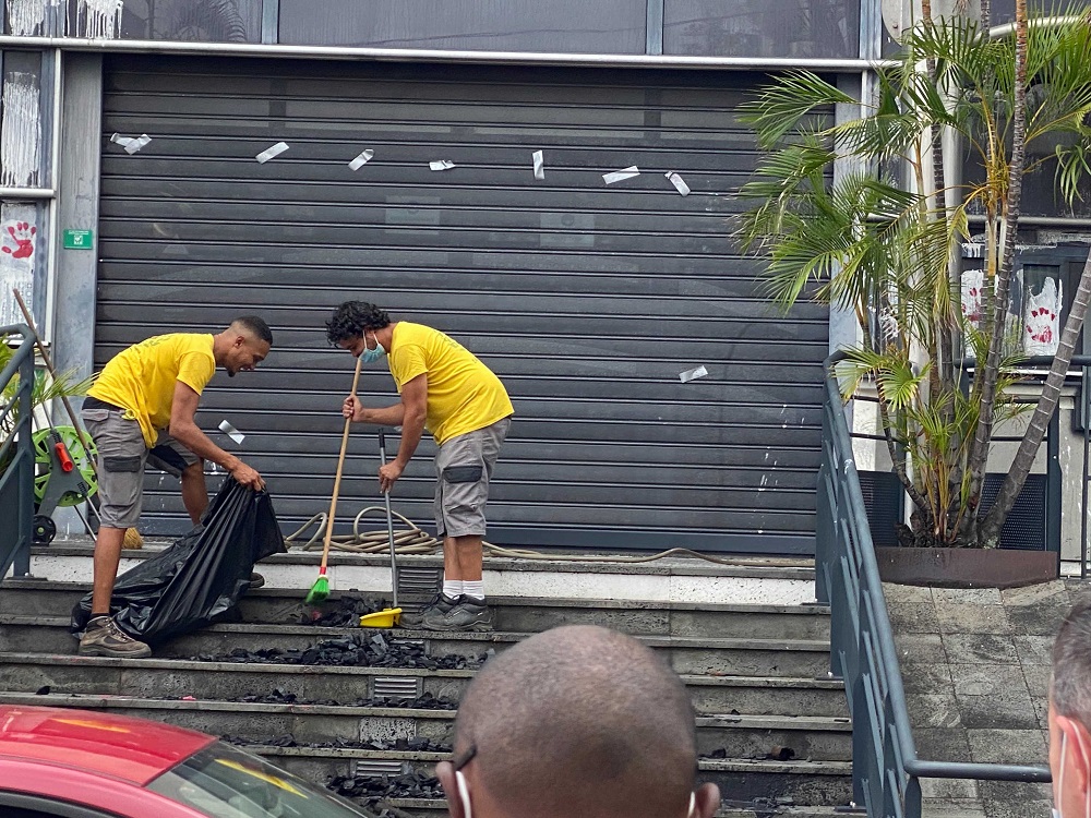 La Banque de BNP Paribas à Saint-Denis, située rue Juliette Dodu a été détériorée : les vitres sont taguées et du charbon sur le parvis. Des policiers sont actuellement sur place.