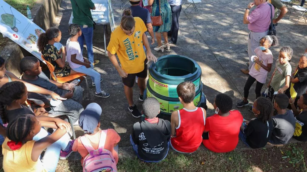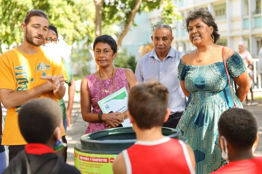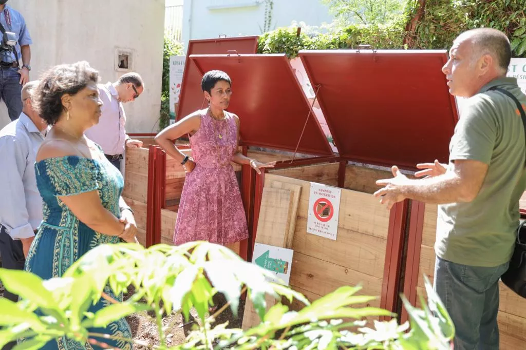 Ce vendredi à 9 heures, à l’occasion de l’opération « Tous au compost », portée par le Réseau Compost Citoyen Réunion, la Maire, Ericka Bareigts, Jean-Alexandre Poleya, élu délégué à la ville plantée et Thierry Ouillon, directeur général de la SIDR ont inauguré le premier compost collectif, mis en place par l’association Jardin Lakour, au sein de la résidence Jules Ferry.