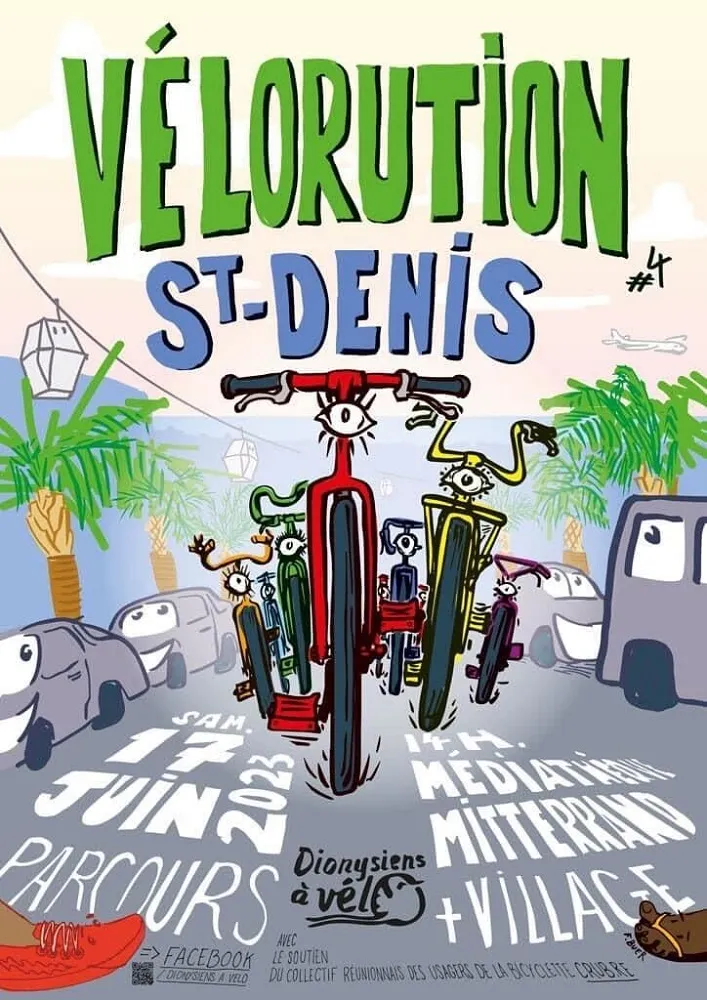 Tout d’abord, il y aura une balade à vélo dans les rues de Saint-Denis. Ce sera une balade amusante et familiale où vous pourrez tous faire du vélo ensemble. Après la balade, il y aura un village avec beaucoup de choses sympas comme de la musique live, des jeux et des ateliers. Vous pourrez également en apprendre davantage sur les différentes organisations et entreprises qui soutiennent le vélo et partager votre amour pour le vélo avec les autres.