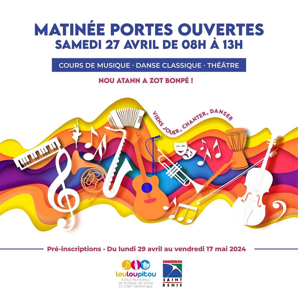 Samedi dernier, la ville de Saint-Denis a invité les enfants et les adultes à découvrir le monde des arts lors d’une matinée portes ouvertes à l’École Municipale de Musique, de Danse et d’Art Dramatique Loulou Pitou. De 8h à 13h, les visiteurs ont ainnsi eu l’opportunité de découvrir les différentes disciplines artistiques proposées par l’école, dans une ambiance conviviale et enrichissante.