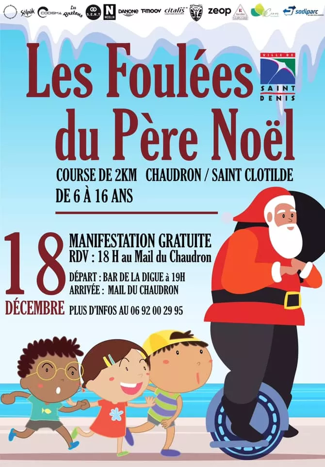 L’AVAD, run oxygene en partenariat avec la Ville de Saint-Denis vous invitent le samedi 18 décembre aux alentours de 19h un événement sportif animation « les Foulées du Père Noël » pour les enfants de 6 à 16 ans.