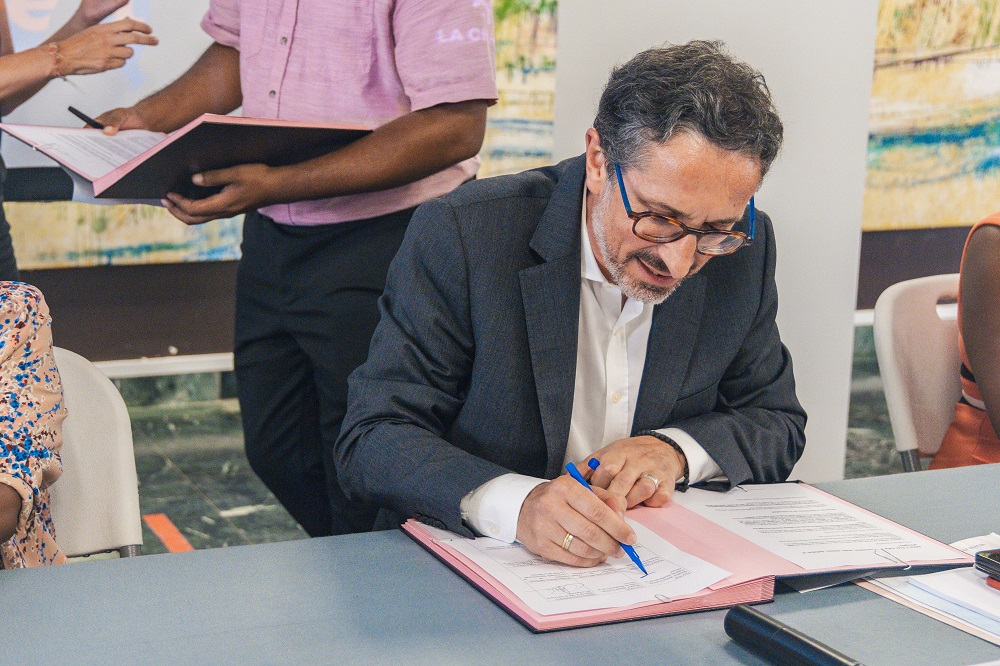 La convention partenariale du tout premier plan de sauvegarde d’Outre-mer a été officiellement signée ce lundi 29 janvier 2024. Après des années d’études, de réunions, de visites, mais aussi énormément de tenacité, la mise en place du plan de sauvegarde pour la copropriété de la Chaumière a été validée en décembre dernier lors de la dernière commission.