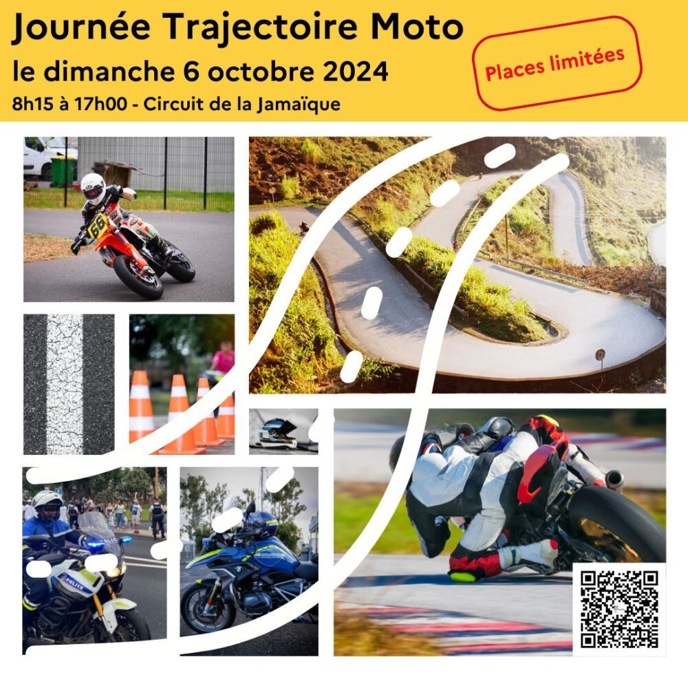 Une journée dédiée à la trajectoire de sécurité en moto se tiendra sur le circuit de la Jamaïque à Saint-Denis ce dimanche 6 octobre 2024. Divers ateliers seront proposés afin de permettre aux participants de se perfectionner en conduite et en maniabilité de leurs deux-roues motorisés.