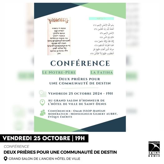 Ce vendredi 25 octobre à 19h00, dans le grand salon de l’ancien hôtel de ville, la Ville de Saint-Denis vous invite à une conférence interreligieuse animée par Omar ISSOP-BANIAN, avec Mgr Gilbert Aubry en tant que modérateur.