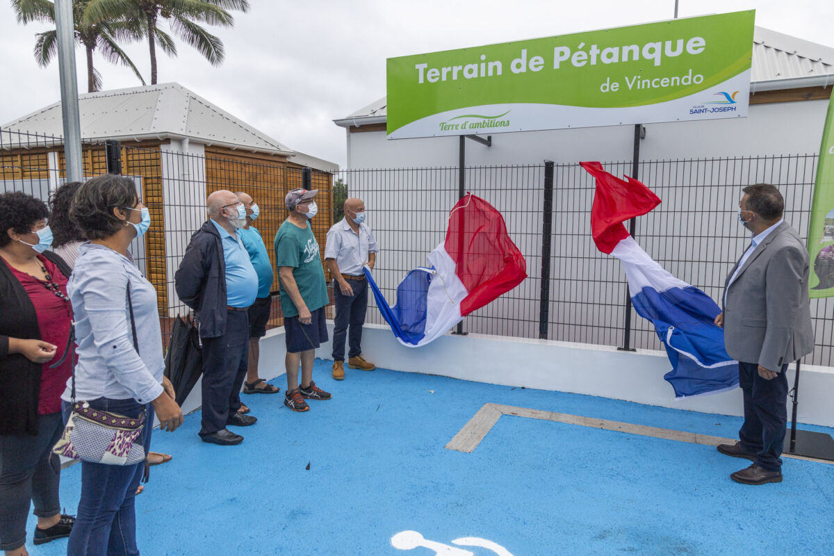 Le cérémonie d’inauguration d’un nouveau terrain de pétanque eu lieu à  Vincendo ce lundi 19 avril.  « Après plusieurs mois de travaux, nos amis boulistes, mais également les riverains qui souhaitent venir prendre une bouffée d’air frais, bénéficieront d’un espace convivial et agréable pour la pratique des loisirs », a déclaré le maire, Patrick Lebreton.