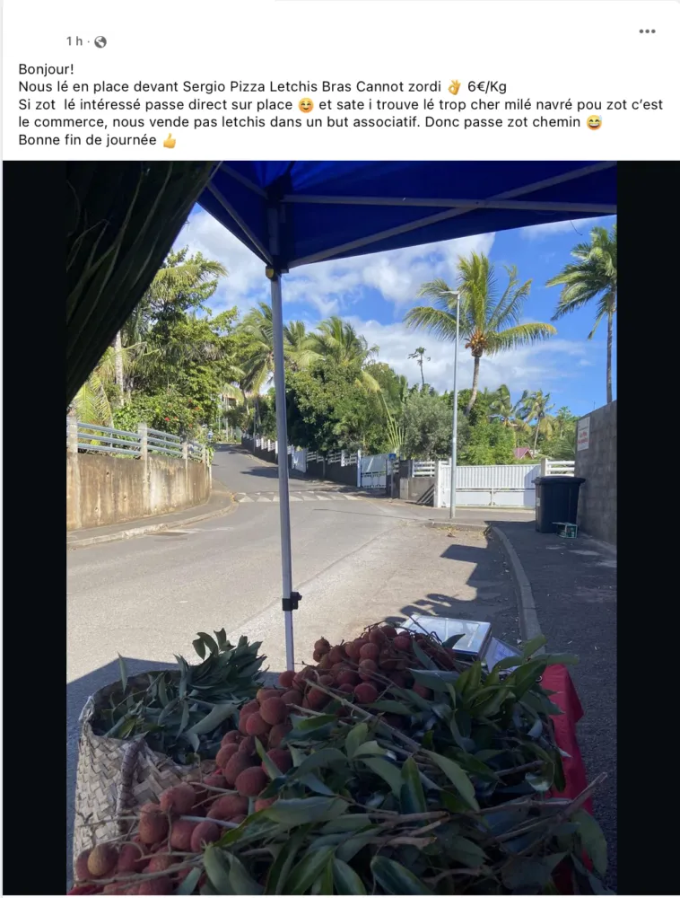 C’était le prix des letchis, il y a quelques jours, devant une pizzeria où un petit étal avait été installé, mais depuis les prix ont à nouveau flambé.