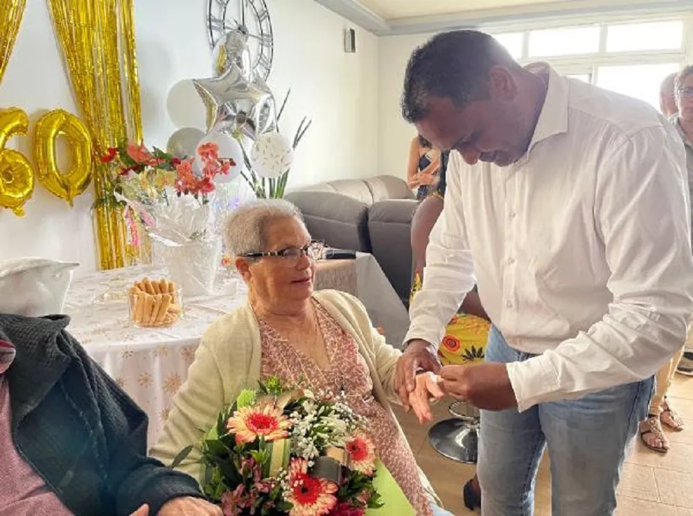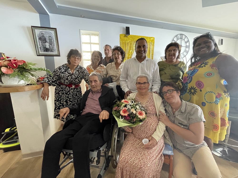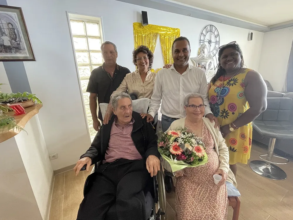 Nico a travaillé à la société de concassage du Port. Rosine a été agricultrice au Plate Saint-Leu. Nos heureux élus qui n’ont pas hésité à s’embrasser devant les objectifs pour célébrer leurs 60 et belles années de mariage en famille.