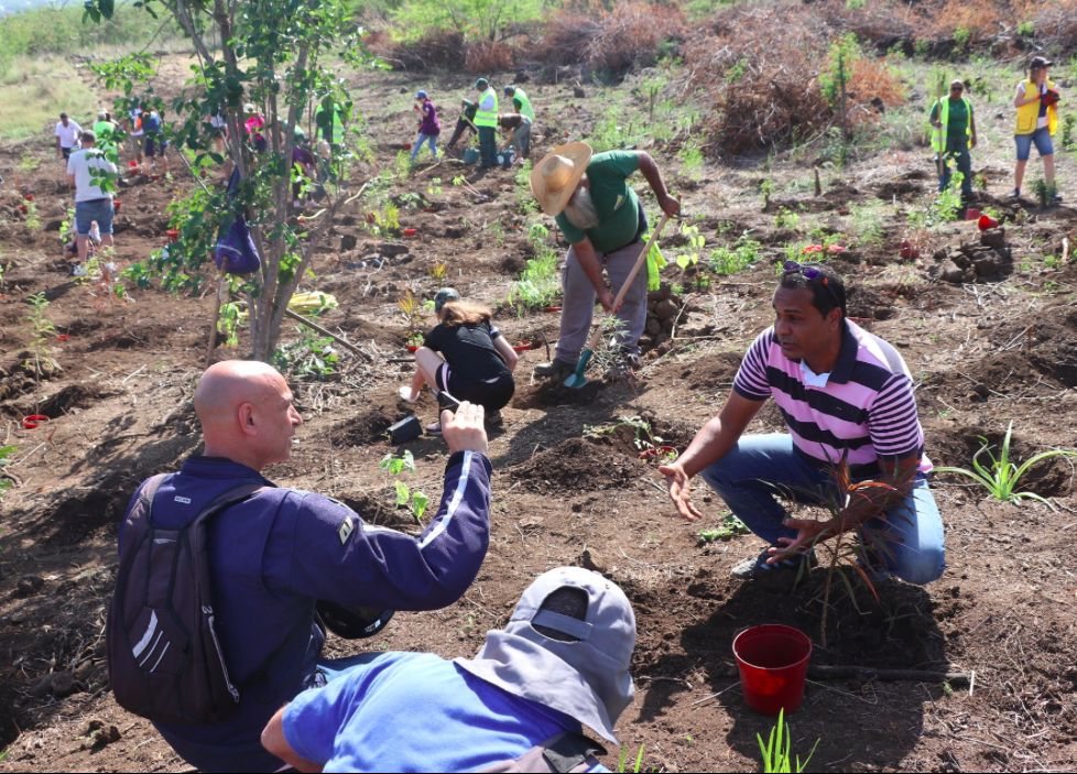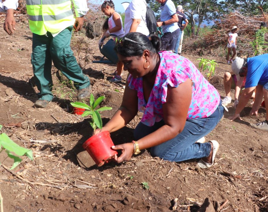 Ce sont plus de 500 plants d’arbres endémiques et indigènes, fournis par le service environnement avec le précieux concours du Département avec son plan 1 million d’arbres, qui ont été plantés ce matin : bois de chenille, bois d’arnette, bois demoiselle, zévi marron, affouche… Dans une ambiance conviviale et remplie de belles énergies !