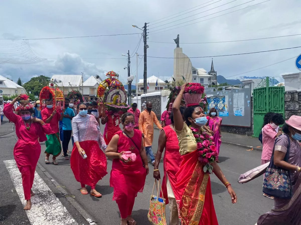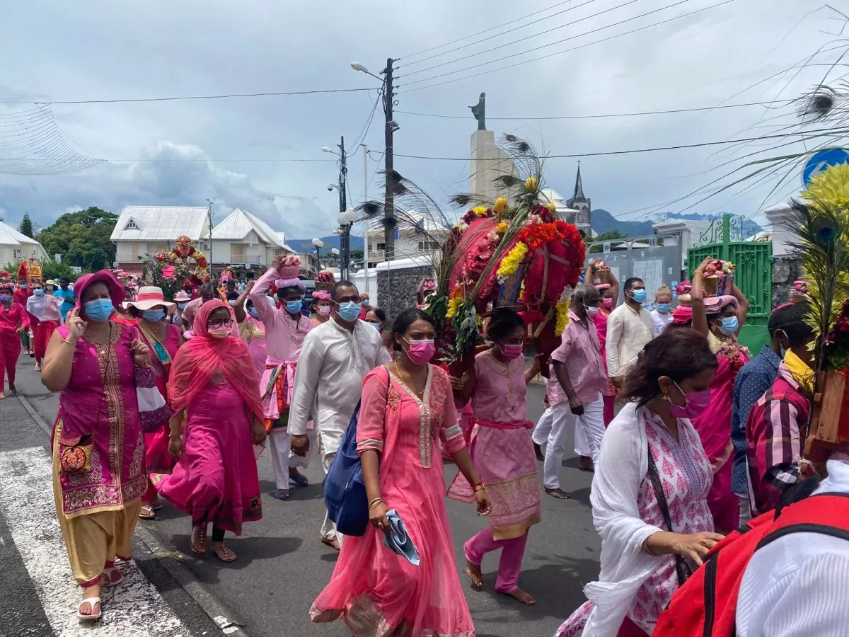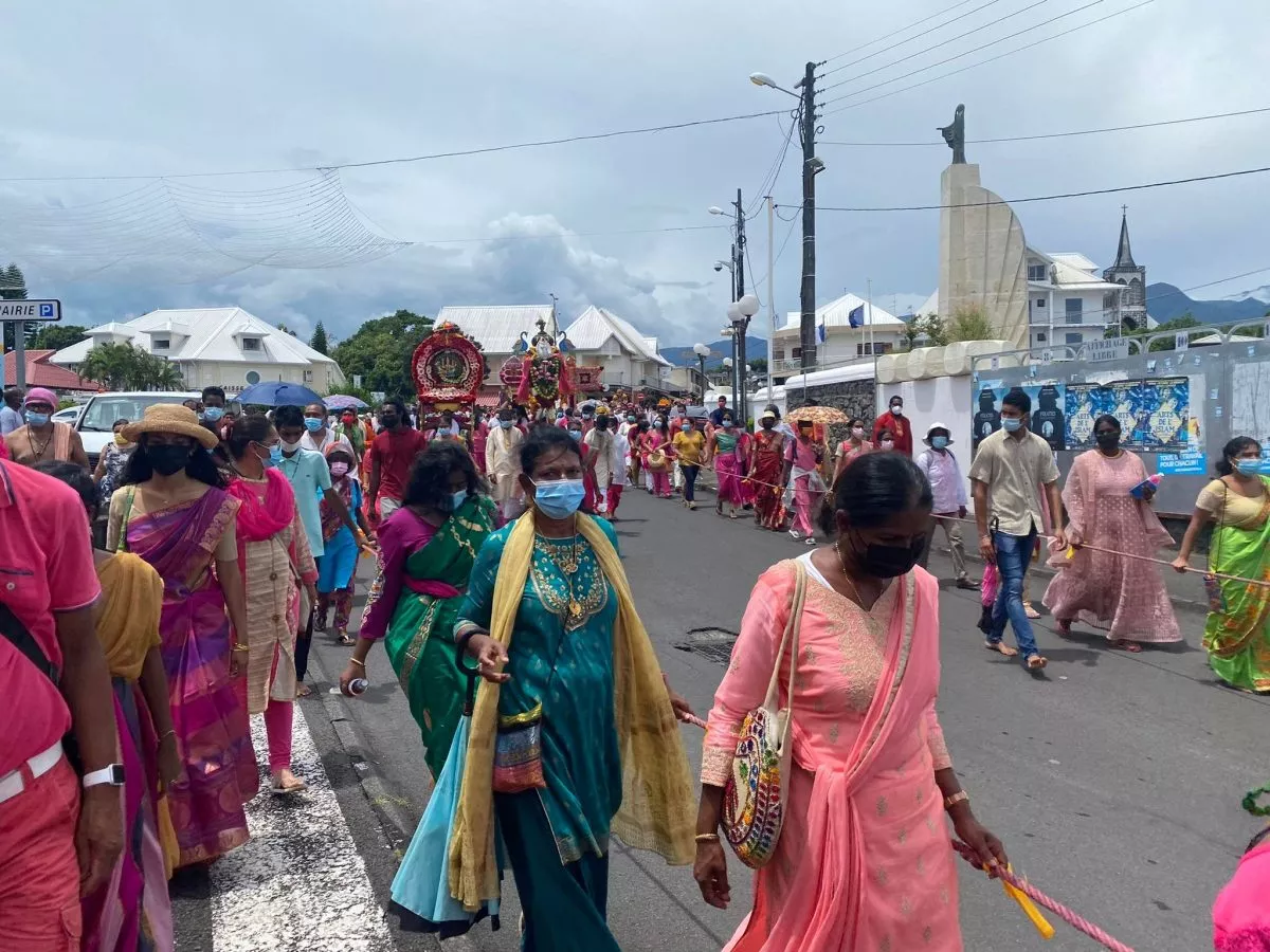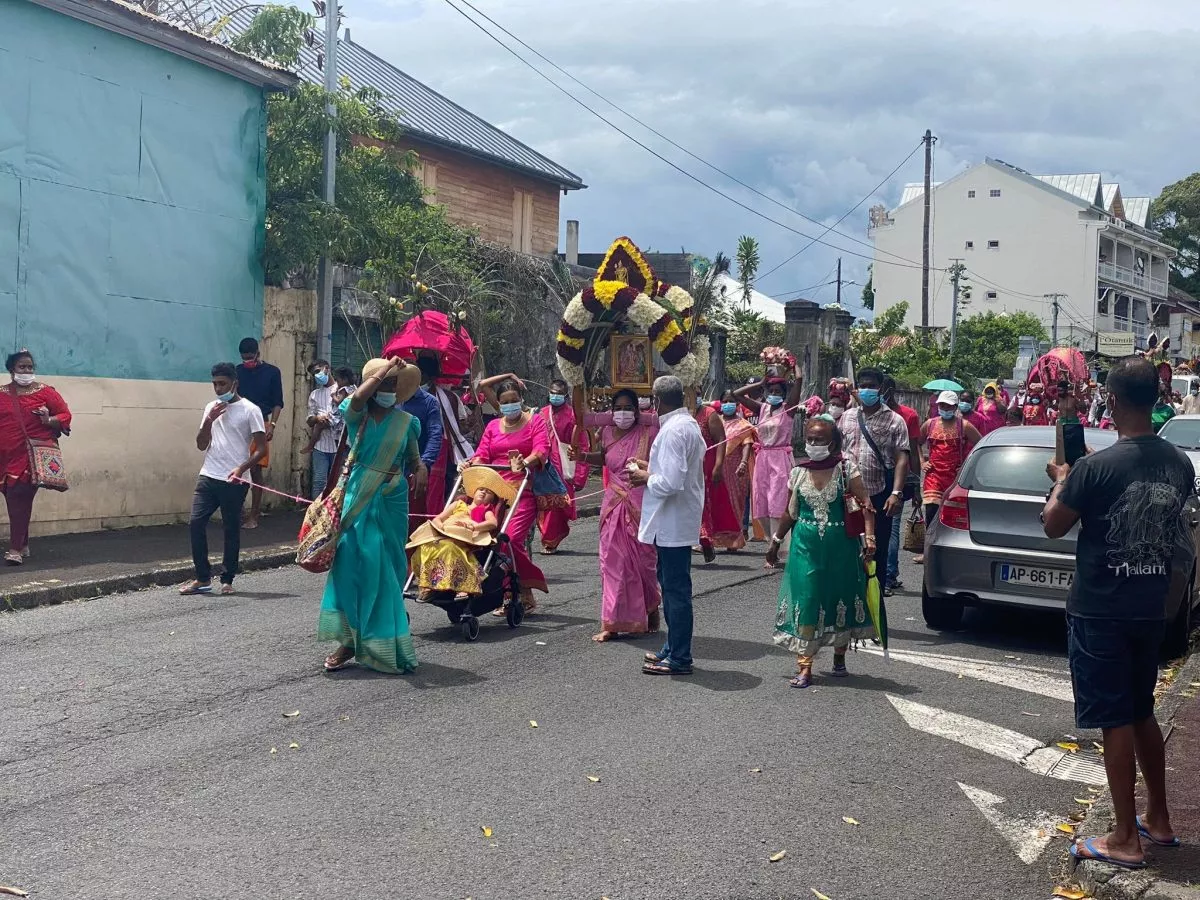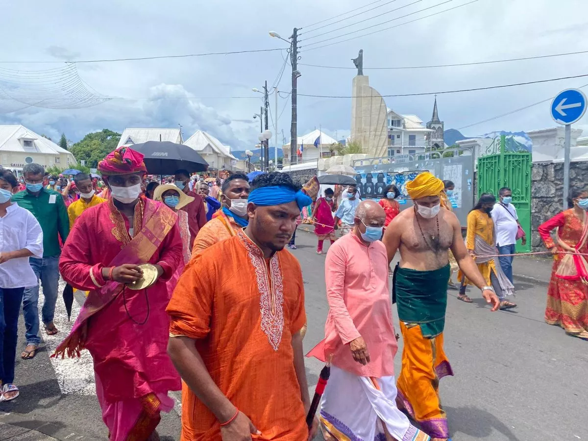 Superbe procession actuellement dans l’avenue principale de Saint Louis , qui se retrouve fermée et ce, jusqu’à 15H30. Les fidèles malbar procèdent au transport du Cavadee dans les rues de la commune jusqu’au Temple où des prières se feront en l’honneur du Dieu Mourouga.