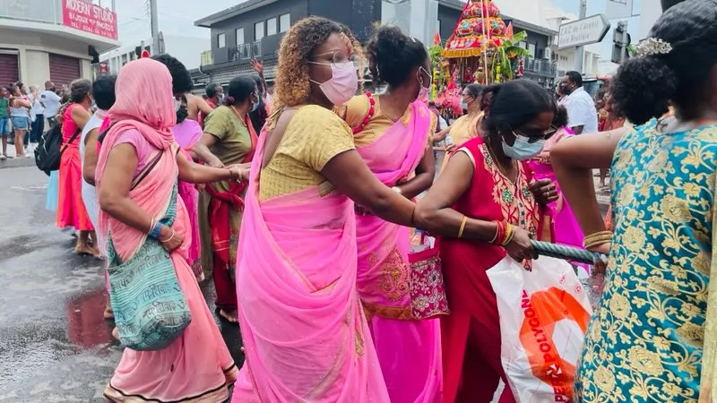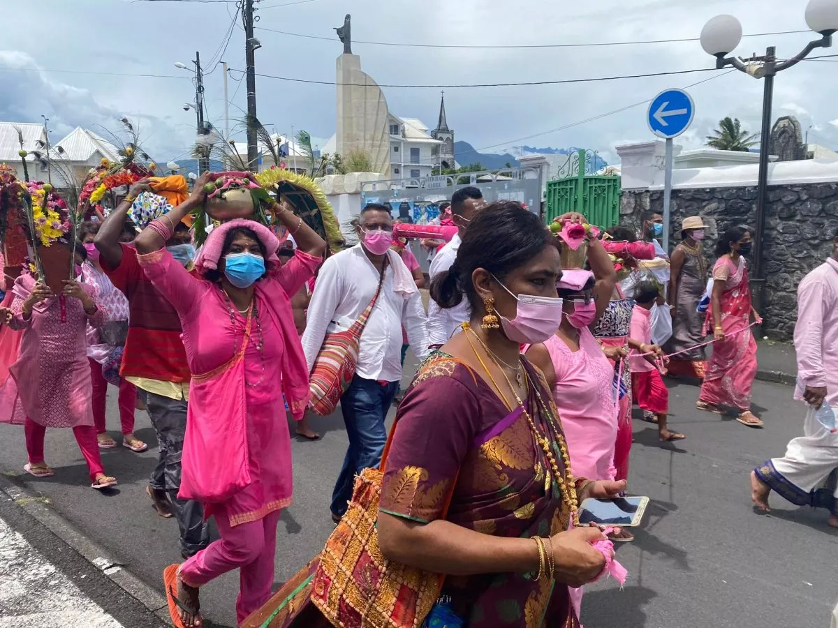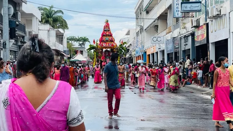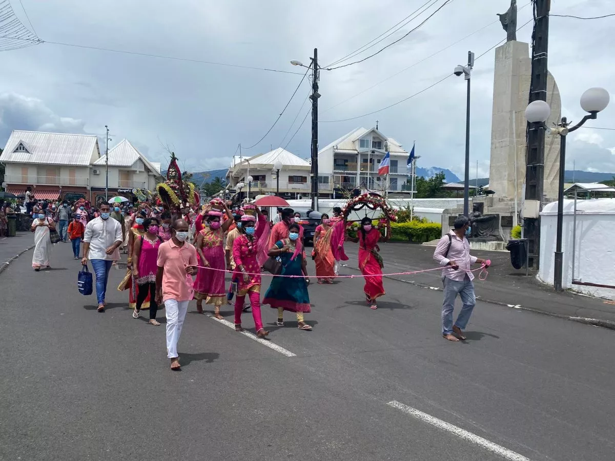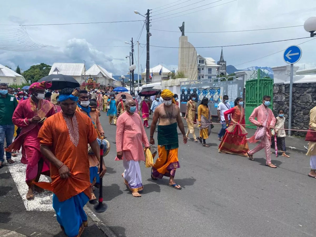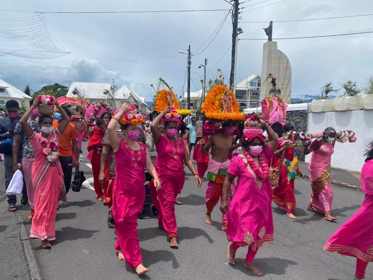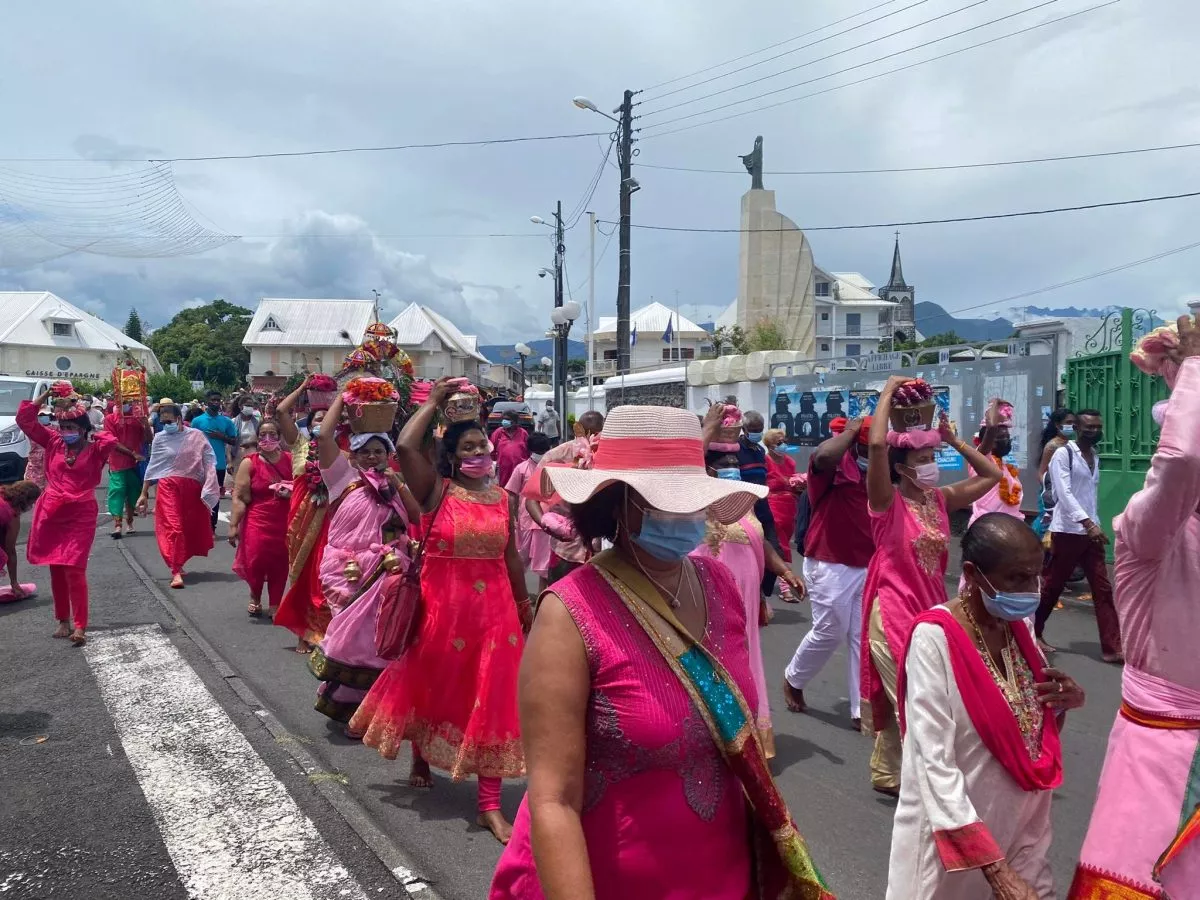Superbe procession actuellement dans l’avenue principale de Saint Louis , qui se retrouve fermée et ce, jusqu’à 15H30. Les fidèles malbar procèdent au transport du Cavadee dans les rues de la commune jusqu’au Temple où des prières se feront en l’honneur du Dieu Mourouga.