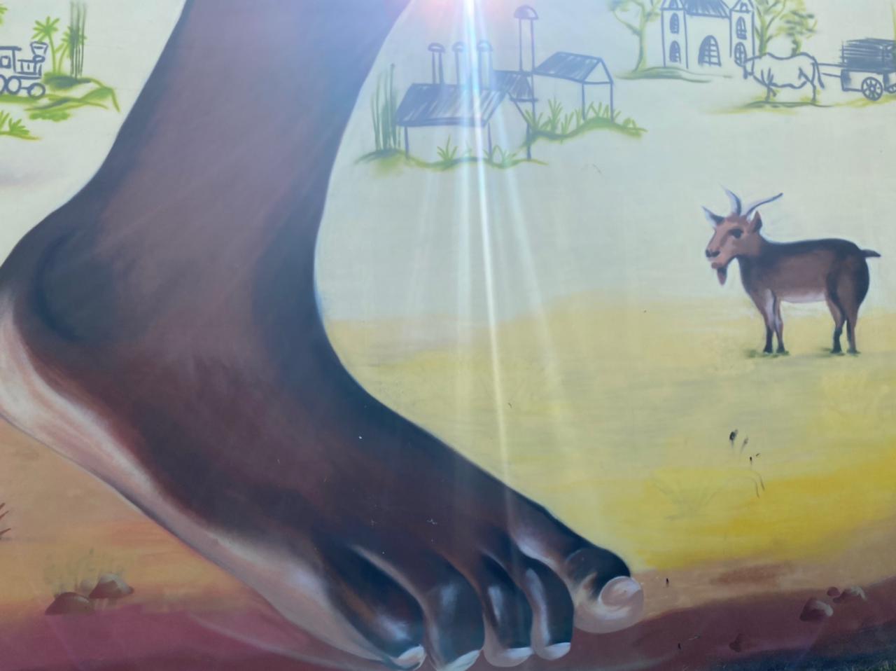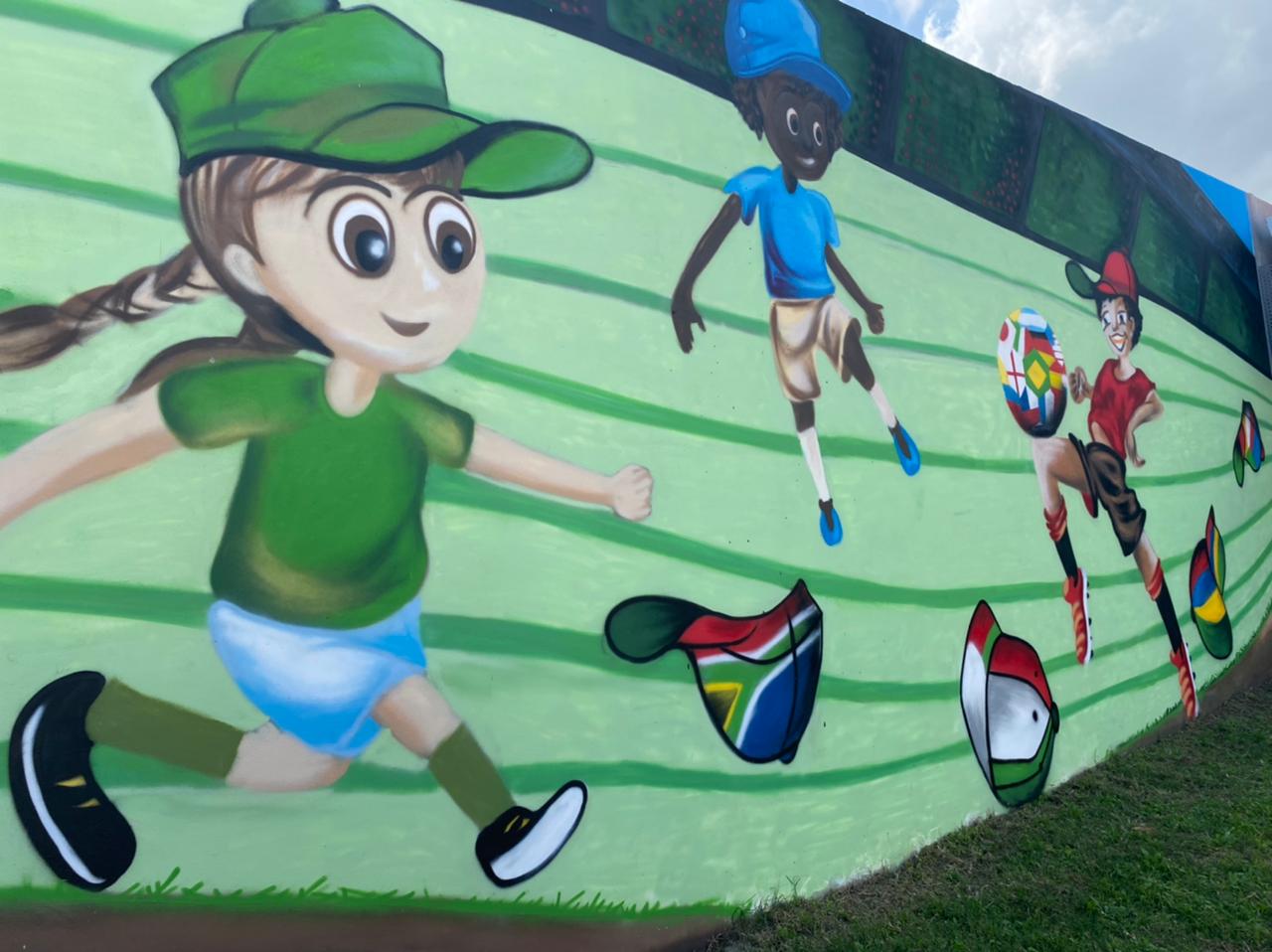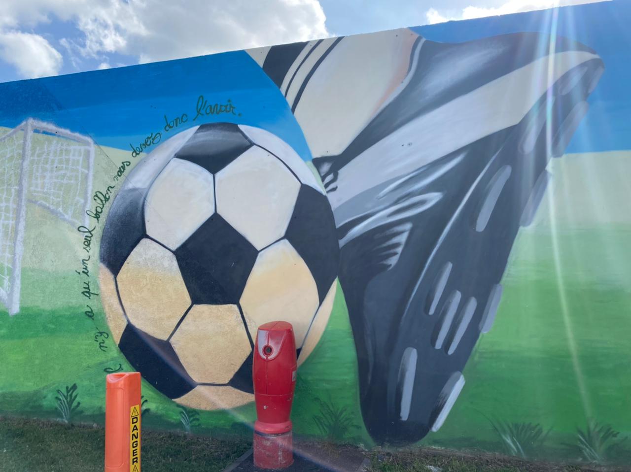 Signification de la Fresque : Sur cette fresque figure, en arrière-plan, le terrain actuel de football.