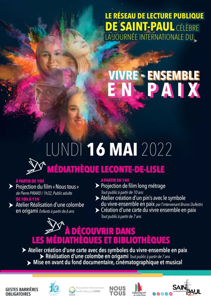 La Journée Internationale du Vivre-Ensemble en Paix #JIVEP à Saint-Paul se déroulera sur la Place du Débarcadère de Saint-Paul de 14h à 22h ce lundi 16 mai 2022.