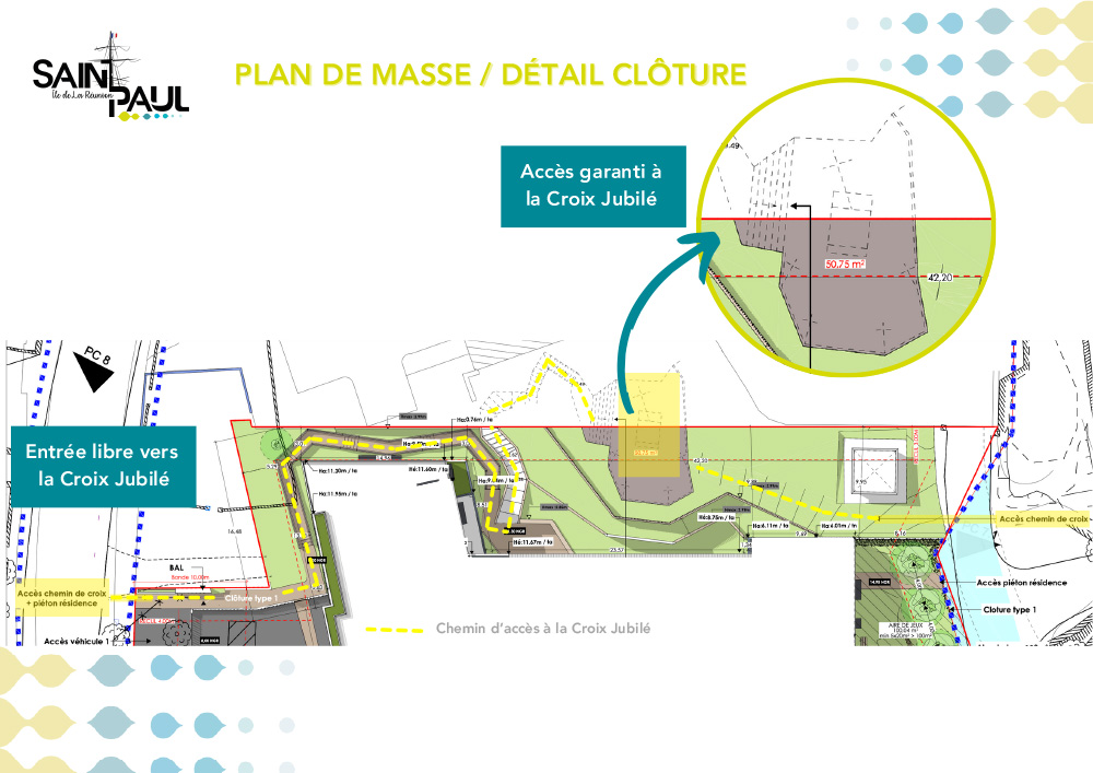 Oui ! La mairie a exigé que soit indiqué à l’article 3 du permis de construire délivré par la Ville le 21 février 2024 qu’une servitude de passage devra être instaurée sur la parcelle objet du présent permis afin que l’accès à la Croix jubilé reste ouvert à tous, conformément à l’engagement joint au permis.
