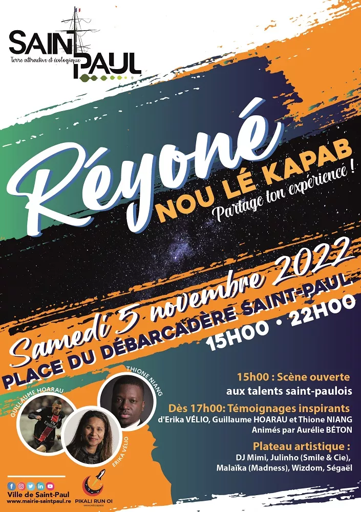Son projet « JeufZone » vise la souveraineté alimentaire au Sénégal. Le point commun de ces deux pointures internationales : participer à la première édition de Réyoné nou lé kapab organisée ce samedi 5 novembre 2022, sur la Place du Débarcadère. Une opération inédite à laquelle prendra aussi part l’ancien footballeur international sélectionné à cinq reprises en équipe de France, Guillaume HOARAU. Le programme à découvrir en cliquant ici.