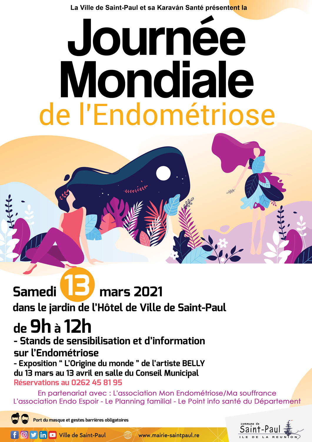 Dans le cadre de la journée mondiale de l’endométriose, la ville de Saint-Paul et sa Karaván Santé organise une matinée de sensibilisation et d’information qui se déroule le samedi 13 mars 2021 de 9h à 12h dans le jardin de l’hôtel de ville de Saint-Paul.