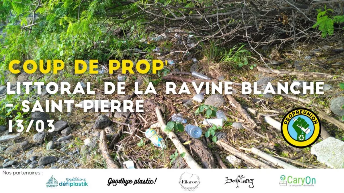 En ce mois de mars 2022, l’association PropRéunion organisera son 18ème Coup de Prop’ sur le Littoral de la Ravine Blanche à Saint-Pierre ce dimanche 13/03/2022 de 8h30 à 11h. Cette opération est a l’initiative d’un adhérent du Sud de l’Ile qui voulait agir face à la pollution de son quartier. C’est la première fois que PropRéunion mènera une opération Coup de Prop’ à Saint-Pierre.