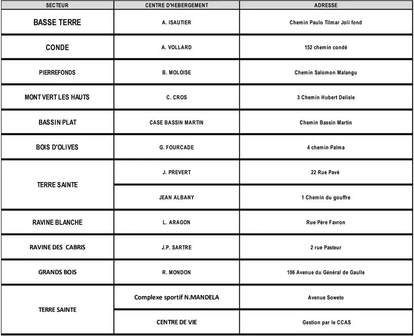 Veuillez trouver ci-jointe la liste des centres d’hébergement d’urgence de la Ville de Saint-Pierre.
