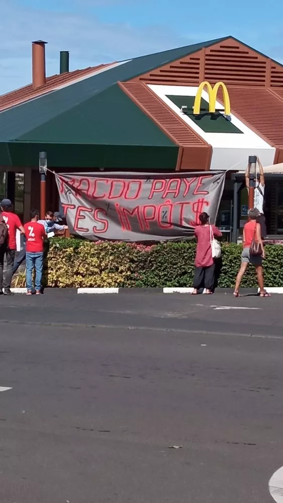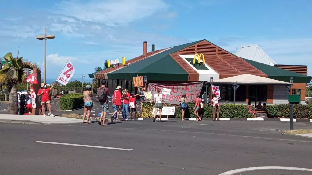 « Ce matin, samedi 18 décembre 2021, une vingtaine de militants d’Attac Réunion et d’eXtinction Rebellion Réunion ont participé à une action non-violente de « prélèvement à la source » devant le restaurant McDonalds de Saint-Pierre.