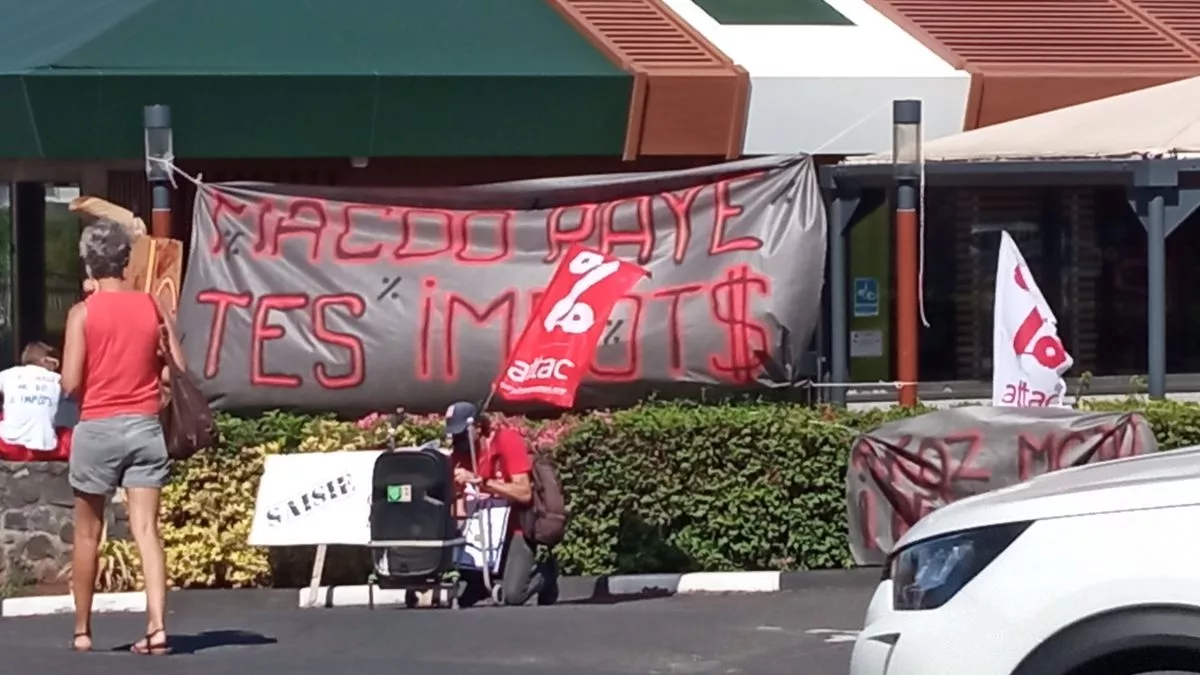 « Ce matin, samedi 18 décembre 2021, une vingtaine de militants d’Attac Réunion et d’eXtinction Rebellion Réunion ont participé à une action non-violente de « prélèvement à la source » devant le restaurant McDonalds de Saint-Pierre.