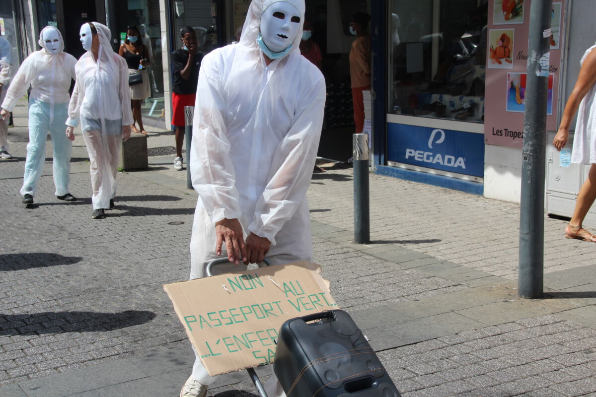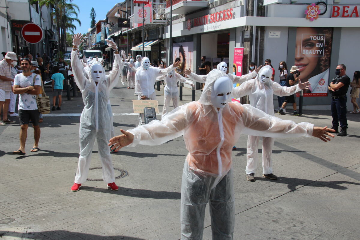 Ce samedi 27 mars, le collectif Masques Blancs Réunion manifeste en centre-ville de Saint-Pierre en signe de protestation contre les mesures sanitaires.