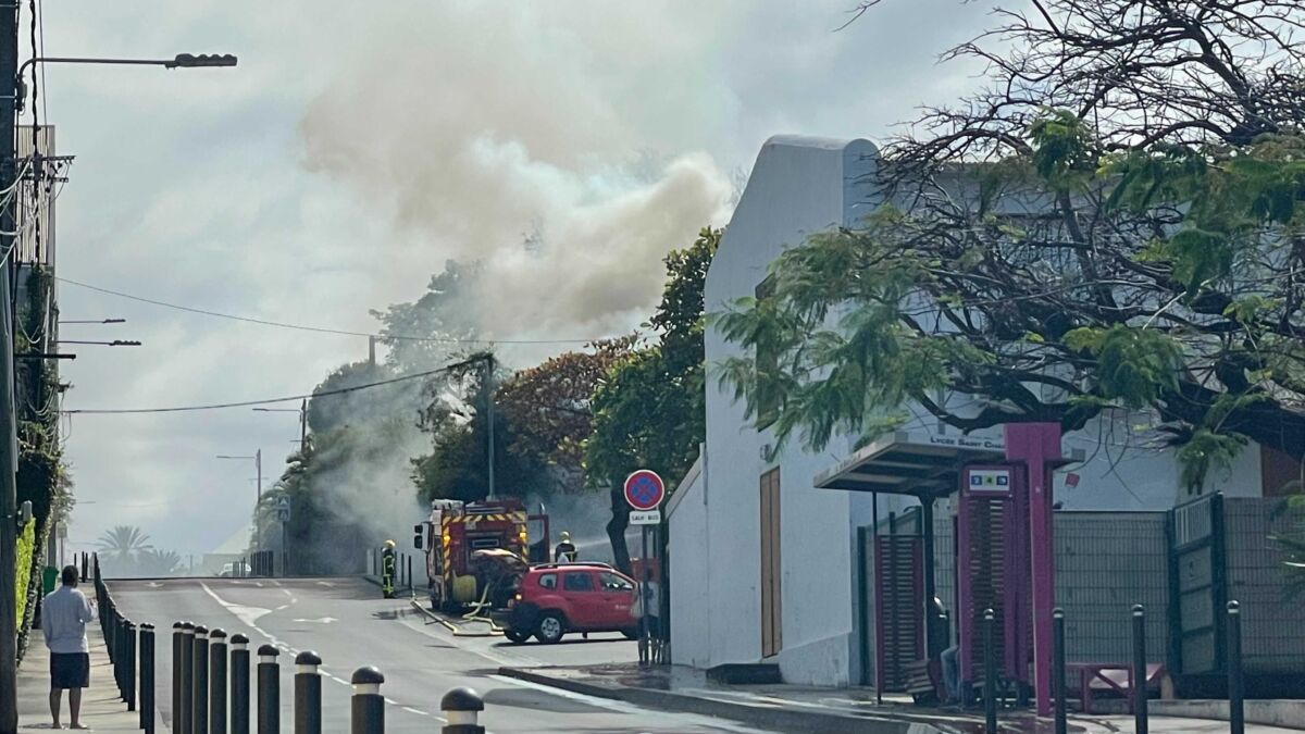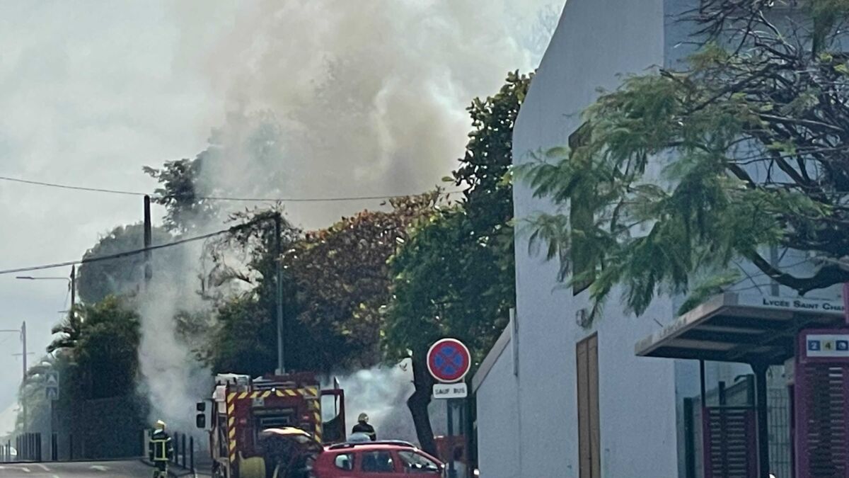 Important incendie, rue Auguste Babet, à Saint-Pierre. L’incendie se situe au niveau du parking du lycée St-Charles.