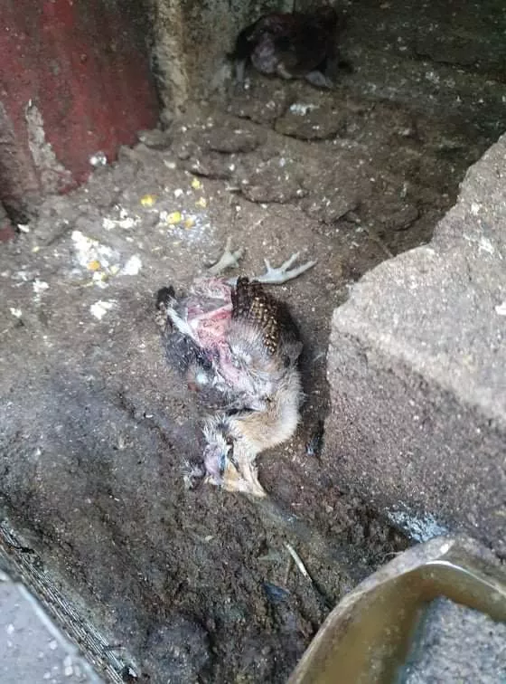 Ce matin, le propriétaire aurait retrouvé ses poulets éparpillés partout, sans vie, à cause des rats qui prolifèrent dans les environs.