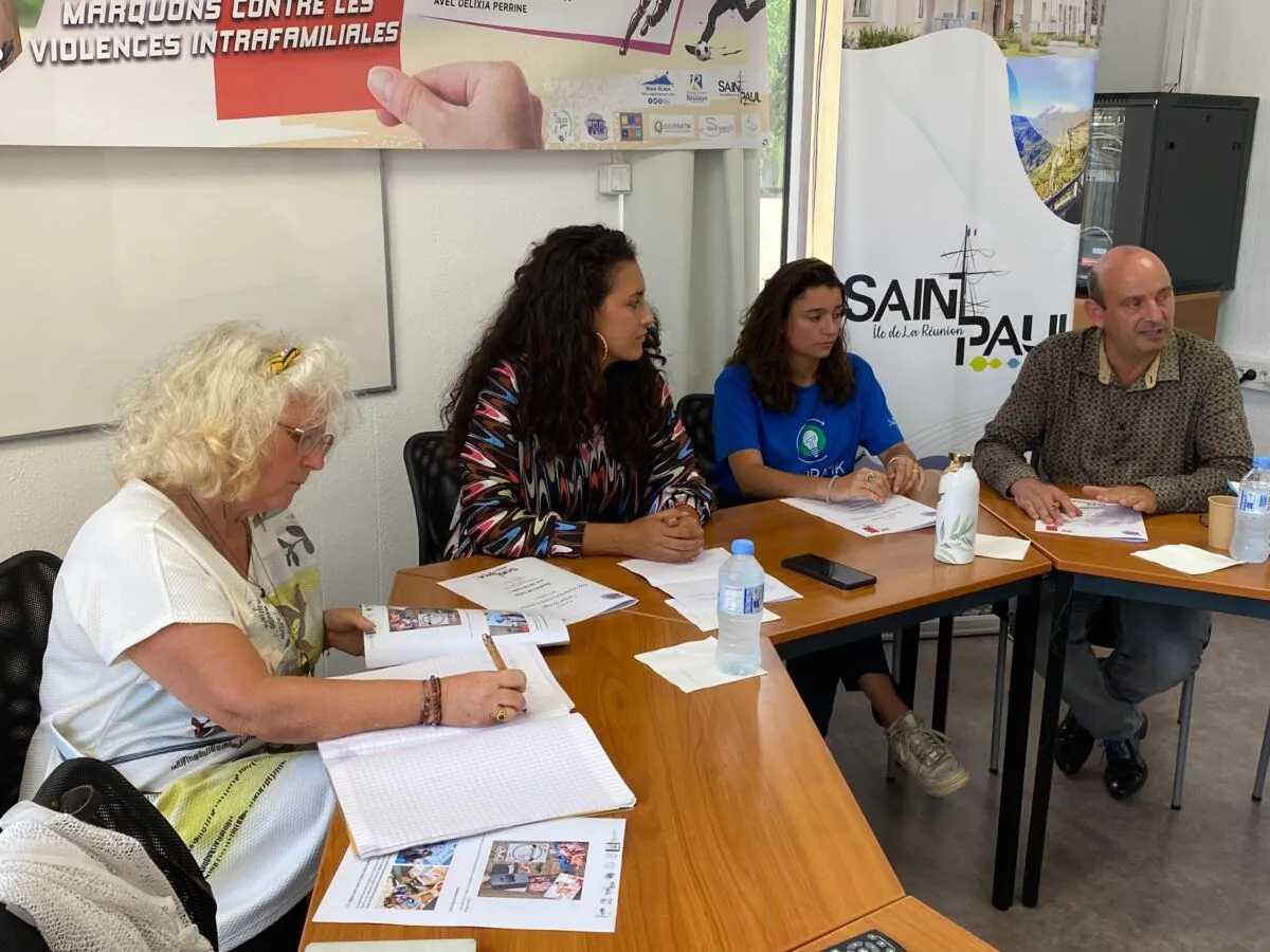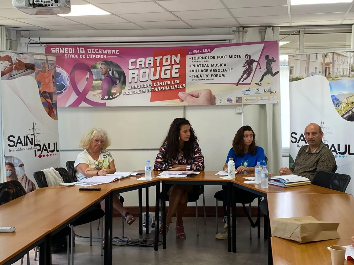 Une conférence de presse s’est déroulée ce jeudi 8 décembre à la Mairie de Saint-Paul où le CEVIF (Collectif pour l’élimination des Violences familiales) et la Commune présentaient l’événement “Carton Rouge aux violences Intra Familiales”. Elle s’est tenue en présence de Frédéric ROUSSET, président du CEVIF, Chloë BROCHETON d’Ekopratik, des élu(e)s de la Ville Roxanne PAUSÉ-DAMOUR, déléguée à la politique Sénior et au développement des actions intergénérationnelles et aux affaires sociales, de Patricia VALLON-HOARAU CROSSON, déléguée à l’insertion sociale et à l’égalité des droits et à la lutte contre l’illettrisme et de Sébastien GUYON, délégué à la Politique de l’Eau, à l’Assainissement et à la GEMAPI, à la gestion du personnel communal, à la sécurité et à la police. “La thématique des Violences Intra familiales est très importante pour nous. C’est pour cela que nous avons mis en place le premier colloque professionnel sur la lutte contre les violences intra familiales à Saint-Paul. Un colloque qui s’est tenu le 23 novembre dernier avec les professionnels qui oeuvrent dans le domaine de l’accompagnement des victimes de violences intrafamiliales (VIF) à Saint-Paul. Nous souhaitons mettre du sens dans le parcours des victimes, y mettre du process afin de le rendre plus fluide”, commence Roxanne PAUSÉ-DAMOUR, déléguée à la politique Sénior et au développement des actions intergénérationnelles et aux affaires sociales.
