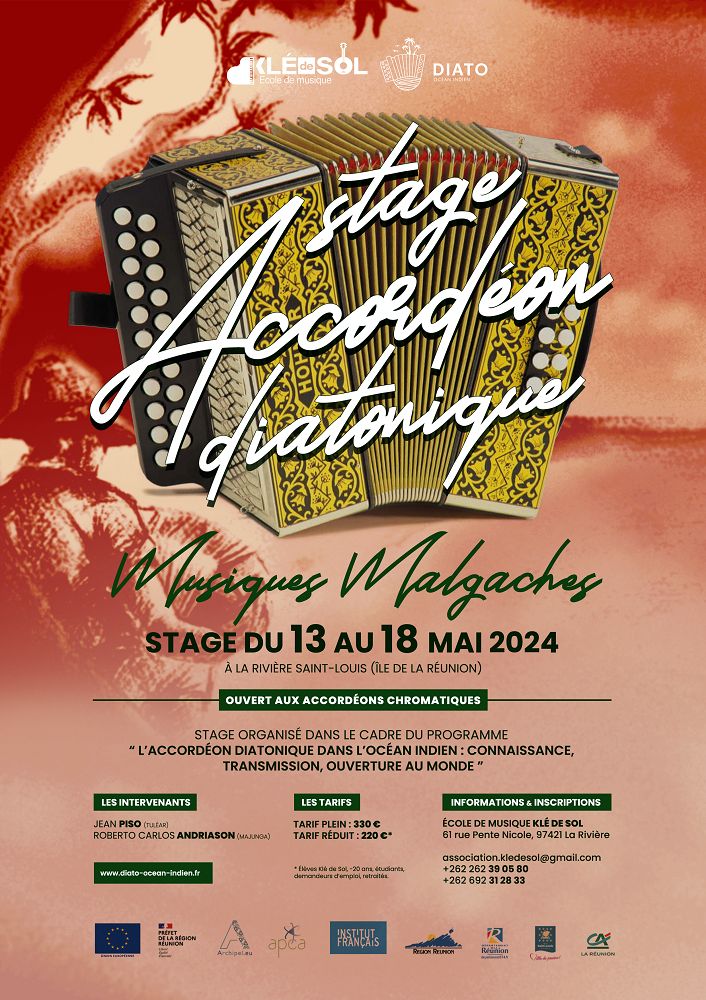 Du 13 au 18 mai, un stage de musique malgache animé par Jean PISO (Tuléar) et Roberto Carlos ANDIASON (Majunga) aura lieu à l’école Klé de Sol, La Rivière Saint-Louis. Cet atelier offrira une occasion unique de découvrir la richesse des musiques malgaches et d’apprendre auprès de musiciens de renommée.
