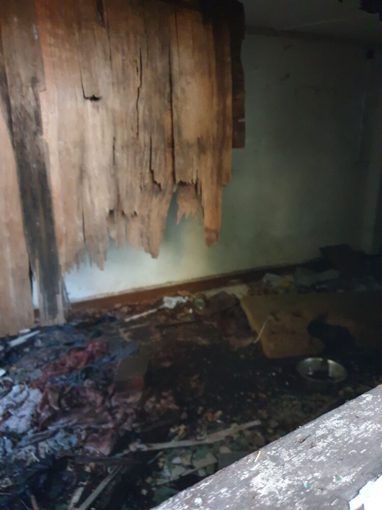 « Nous découvrons au fil de l’eau, 15 chiots de 3 portées différentes, un chiot mort écrasé sous une parabole ronde avec un pneu dessus. Des pièges à l’intérieur de la maison insalubre pour écraser les chiots sous une palette. Les chiots ont été mis en sécurité chez une dame avant leur prise en charge par des associations ou des familles d’accueil. »