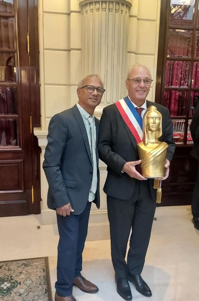 C’est un moment historique qui s’est donc déroulé au Palais des Congrès, en ce mardi 05 décembre, dans la catégorie « Modernité et Mémoire », le Maire Maurice Gironcel, s’est vu remettre, à Paris, la Marianne d’or 2023 ; cette distinction vient récompenser l’ensemble des actions que la Municipalité développe autour de la mémoire et de la reconnaissance pour le jeune esclave Edmond Albius, pour sa découverte de la fécondation de la vanille, un travail de reconnaissance mené et appuyé par l’Association Sauvegarde Mémoire Réunionnaise -ASMR.