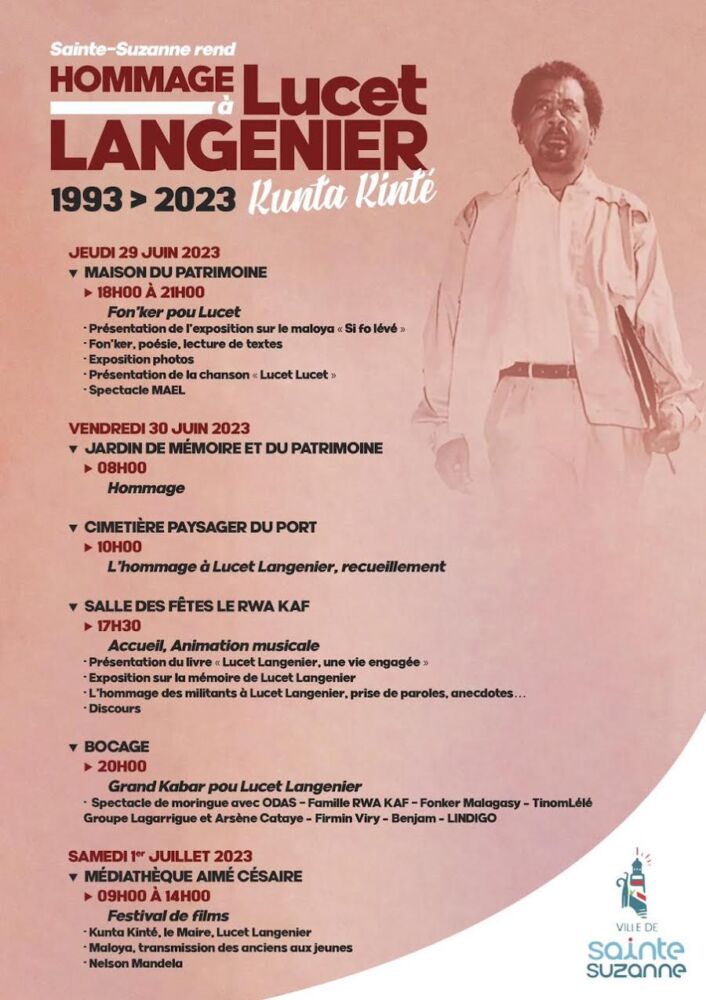 « La vie et les combats politiques de Lucet Langenier (1943-1993), connu dans la mémoire collective comme le « Maire Kunta Kinté », en référence à la fiction américaine « Racines », auront marqué l’Histoire de la ville de Sainte-Suzanne et de l’île La Réunion », souligne Maurice Gironcel.