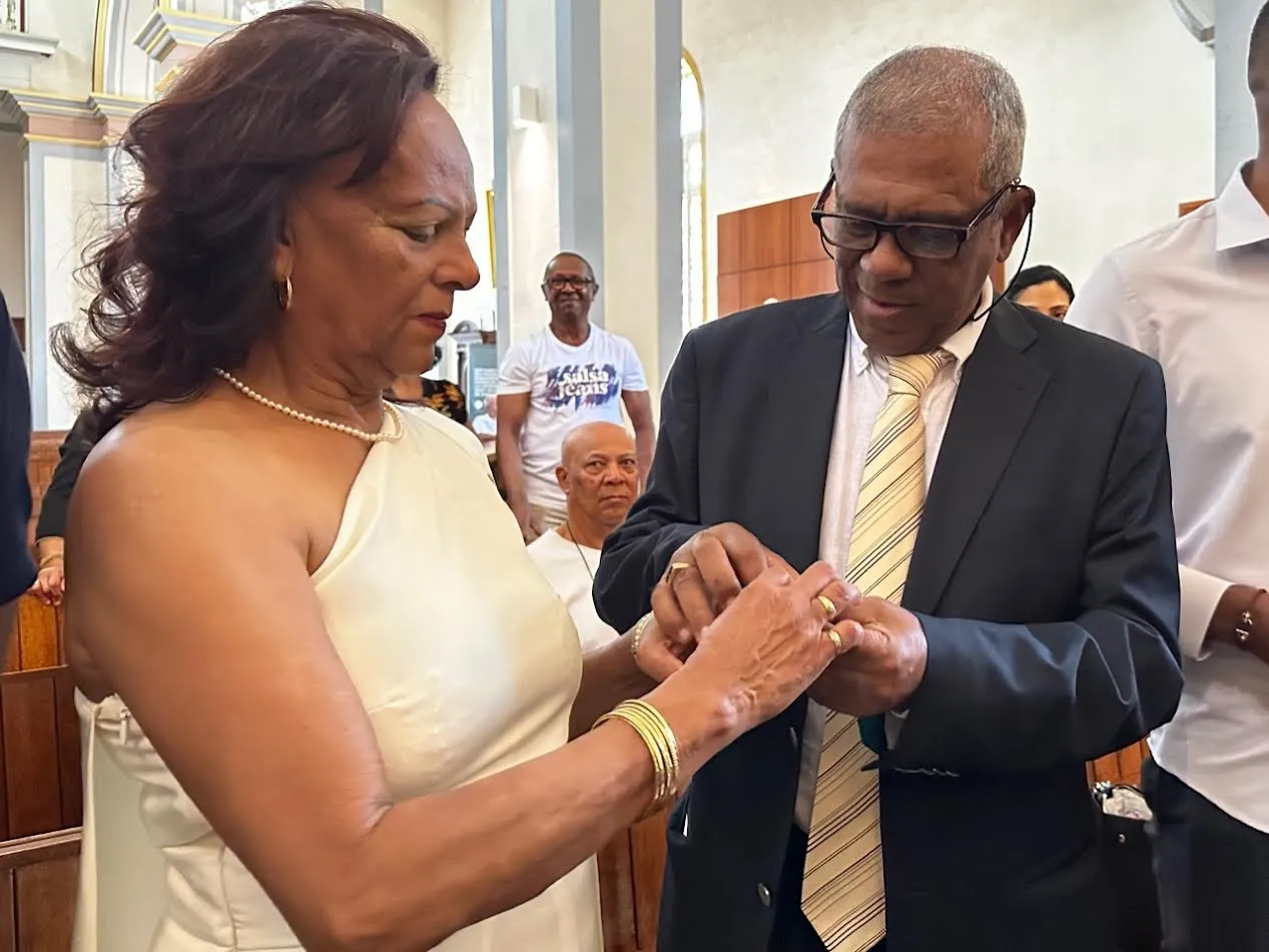 Pour marquer cette occasion spéciale, le couple a renouvelé ses voeux en la cathédrale de Saint-Denis, avant de convier leurs proches à une soirée festive à Sainte-Suzanne.