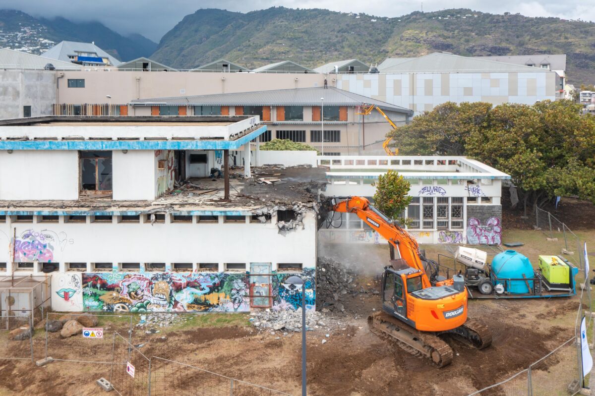Ce mercredi 13 octobre a lieu la démolition de l’ancienne bibliothèque nationale de prêt. Celle-ci entre dans le cadre de la réfection du Barachois et l’aménagement des longères. L’ancienne bibliothèque de prêt sera à terme remplacée par une micro-forêt urbaine, d’espèces adaptées au bord de mer. Nous étions sur place :