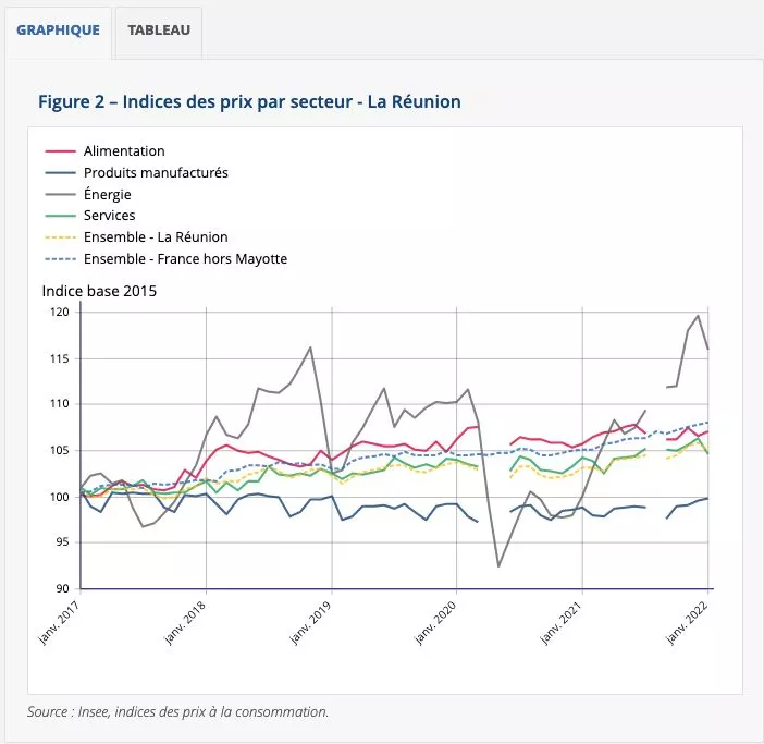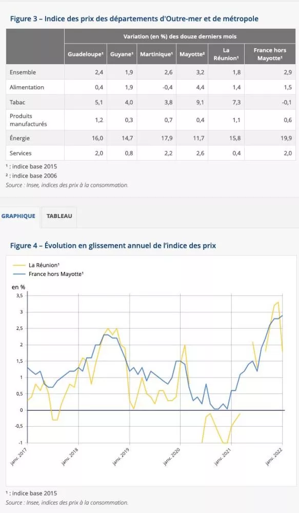 Sur un 1 an, les prix augmentent de 1,8 % à La Réunion