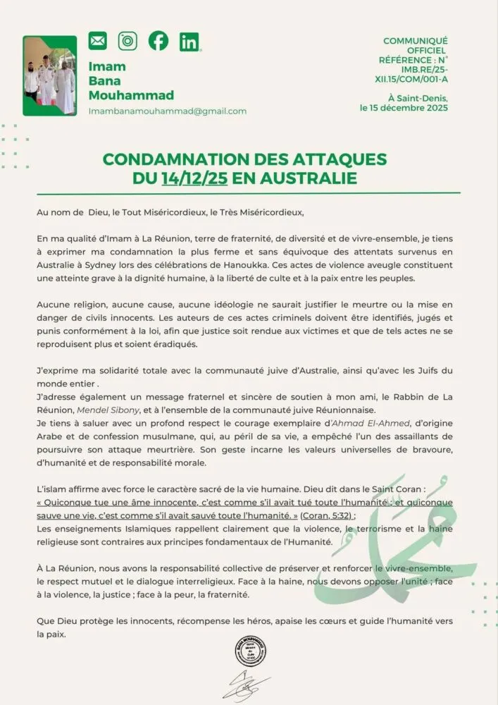 Depuis La Réunion, terre de respect de toutes les confessions, nous ne pouvons qu’être choqués par cet acte de haine qui heurte profondément nos valeurs universelles de paix et de fraternité.