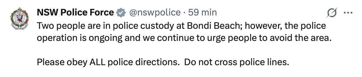 Dans plusieurs messages diffusés sur les réseaux sociaux, la police de Nouvelle-Galles du Sud (NSW Police Force) a appelé la population à éviter immédiatement la zone et a demandé aux personnes présentes sur les lieux de se mettre à l’abri. Les autorités ont également insisté sur le strict respect des consignes de sécurité et des périmètres mis en place.