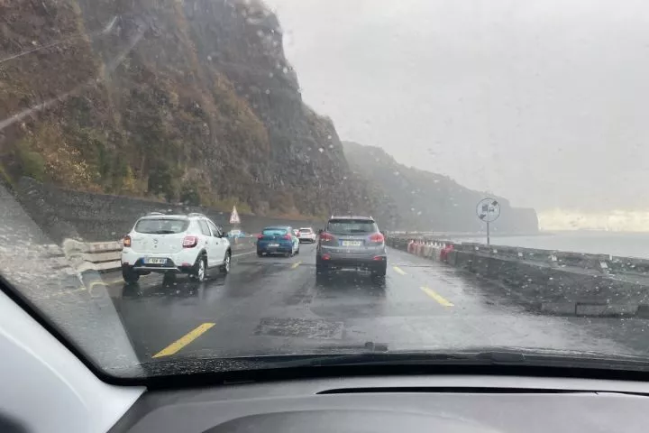 Route des tamarins vers l’Hermitage, une voiture folle, une Hyundai blanche, a percuté plusieurs véhicules à toute vitesse puis aurait fait un délit de fuite vers 10 h 22, malgré son pneu crevé.