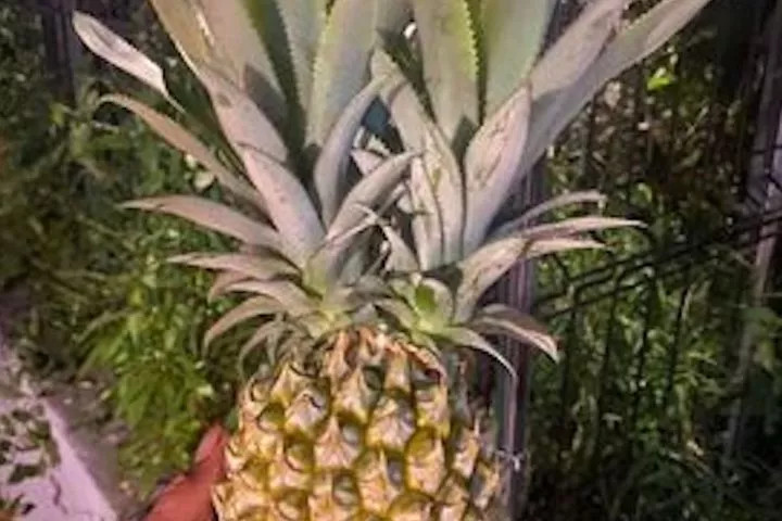 Jean Luc Naguin avait de quoi être surpris hier en allant collecter ses ananas sur son exploitation !